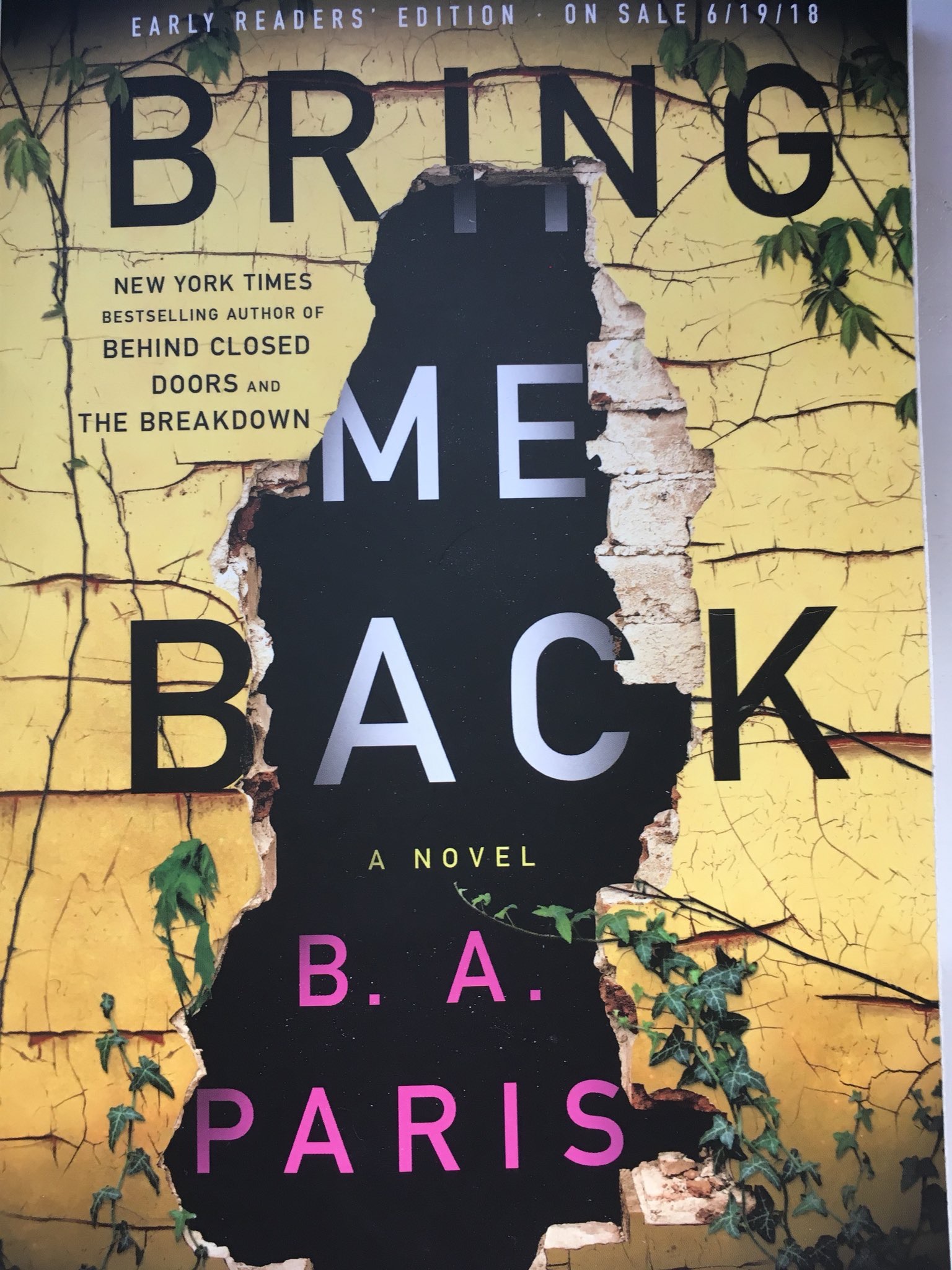 Author: B A Paris is the internationally bestselling author of Behind Closed Doors and The Breakdown. Having sold over one million copies in the UK alone, she is a New York Times bestseller as well as a number one bestseller on Amazon and iBooks. Her books have sold in 37 territories around the world. Having lived in France for many years, she recently moved back to the UK. She has five daughters. Bring Me Back is her third novel. @BAParisAuthor
