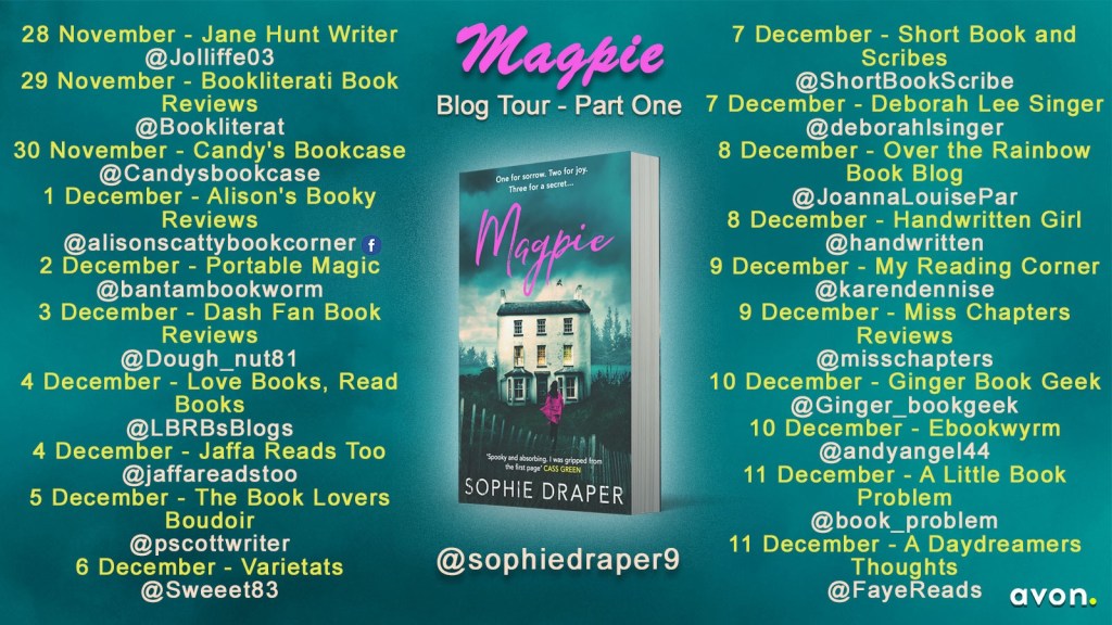 My thanks to Avon Publishing for an eCopy of Magpie by Sophie Draper via NetGalley. All thoughts are my own, I have not received any payment for this review.