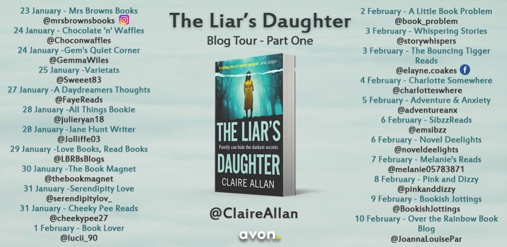 Thanks to Sanjana Cunniah at Avon for the invitation to review The Liar’s Daughter by Claire Allan, join the BlogTour and providing an eCopy of The Liar’s Daughter via NetGalley.