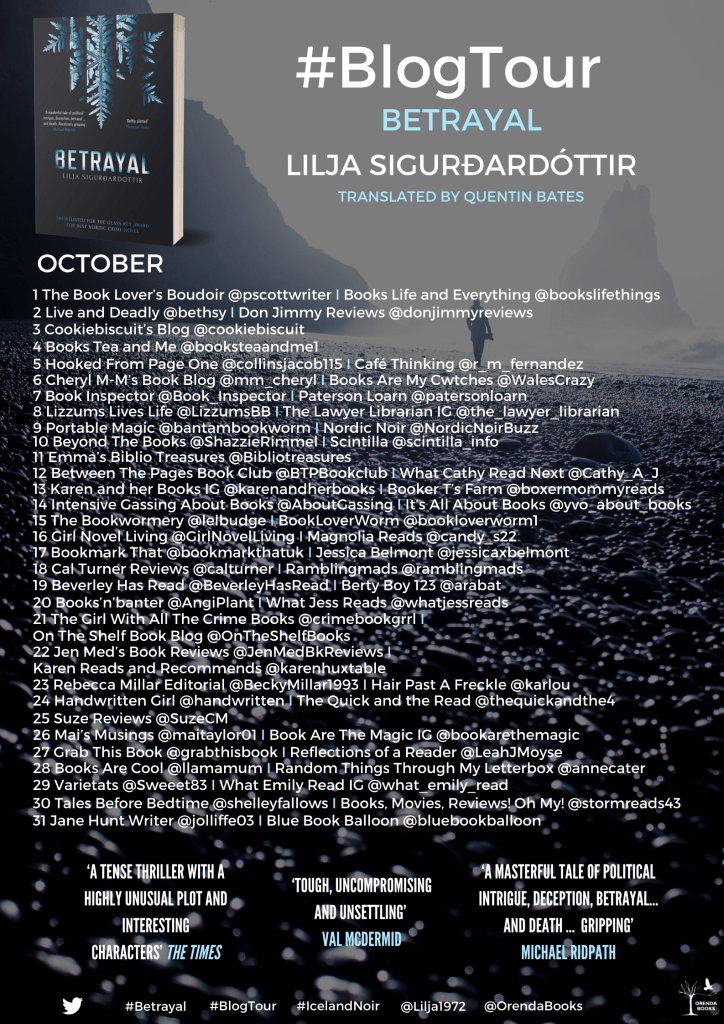 The blog tour for Betrayal coming to your Twitter feeds through October and brought to you by Orenda Books and Anne Cater…