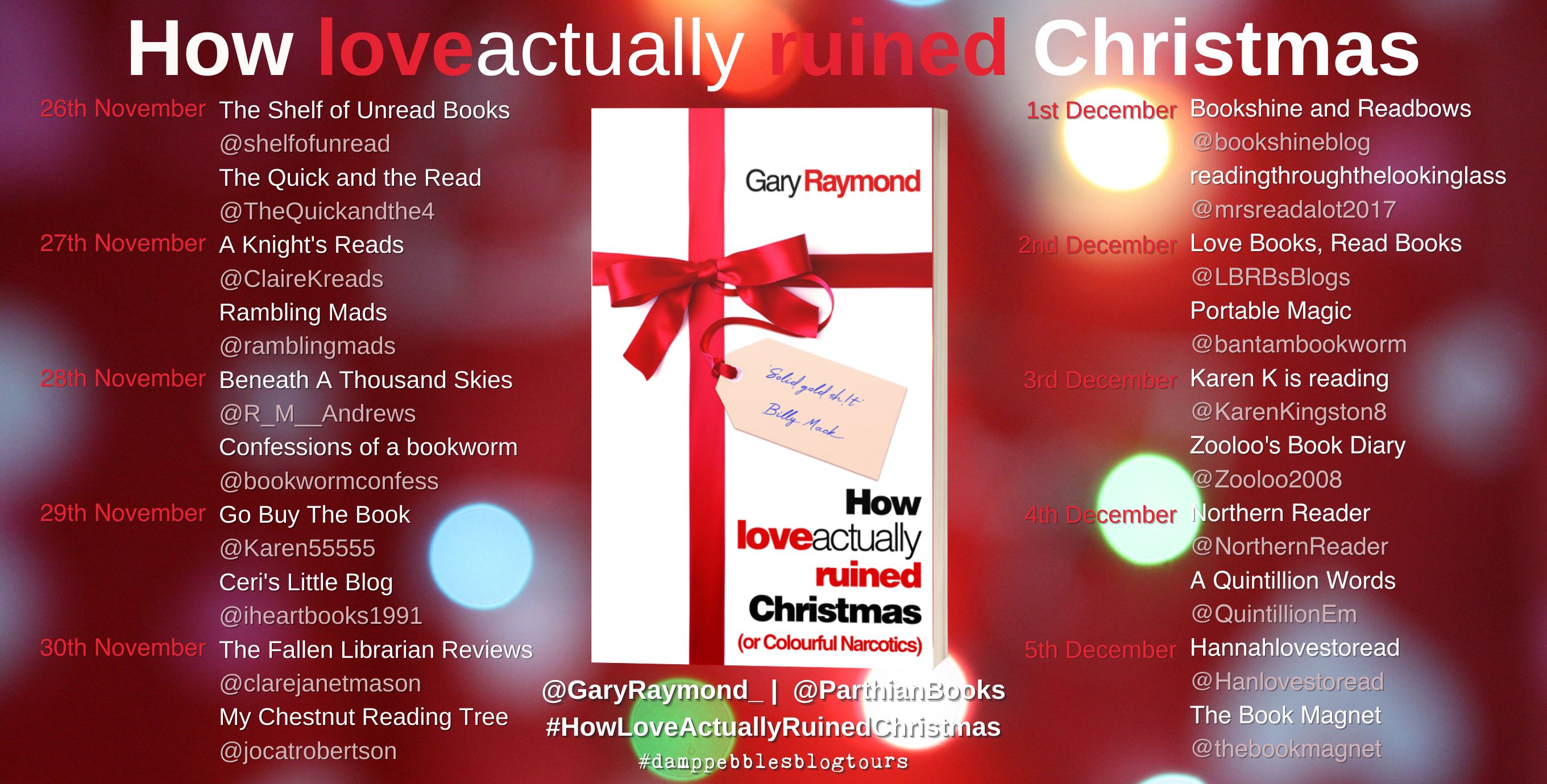 One response to “How Love Actually Ruined Christmas (or Colourful Narcotics) by Gary Raymond #HowLoveActuallyRuinedChristmas @GaryRaymond_ @ParthianBooks @damppebbles #damppebblesblogtours”