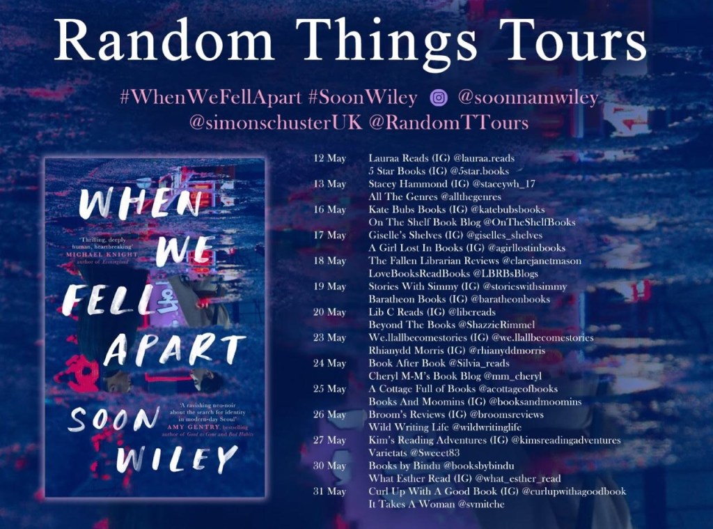 My enormous thanks to Anne at Random Things Tours for the invitation and to Simon and Schuster for an eCopy of When We Fell Apart by Soon Wiley.