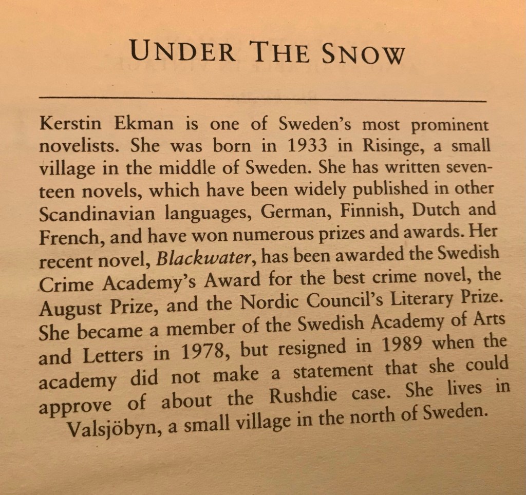 2 responses to “Under the Snow by Kerstin Ekman translator Joan Tate #NovNov22 #NovNov2022”