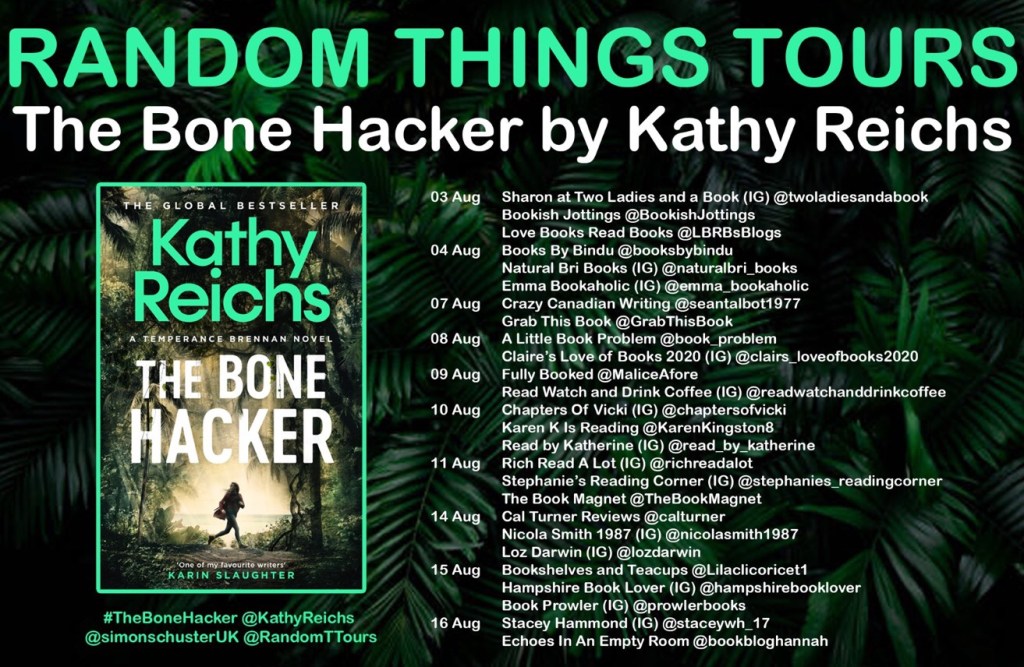 Thanks to Anne at RandomThingsTours for the invite to this awesome BlogTour and to Simon and Schuster for a copy of The Bone Hacker by Kathy Reichs for review purposes.
