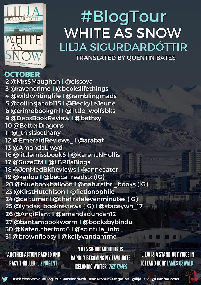 With thanks to Orenda Books for bringing readers these wonderful books in translation and to Quentin Bates for his terrific translation of White As Snow by Lilja Sigurdardóttir.