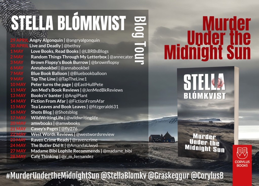 Many thanks to Ewa Sherman for the invite to join this terrific BlogTour and to Corylus Books for an eCopy of Murder Under the Midnight Sun by Stella Blómkvist.