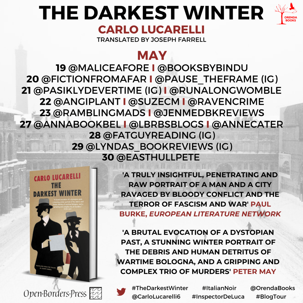 4 responses to “The Darkest Winter by Carlo Lucarelli trans. Joseph Farrell @CarloLucarelli6 @OrendaBooks #TheDarkestWinter #ItalianNoir #InspectorDeLuca #BlogTour”