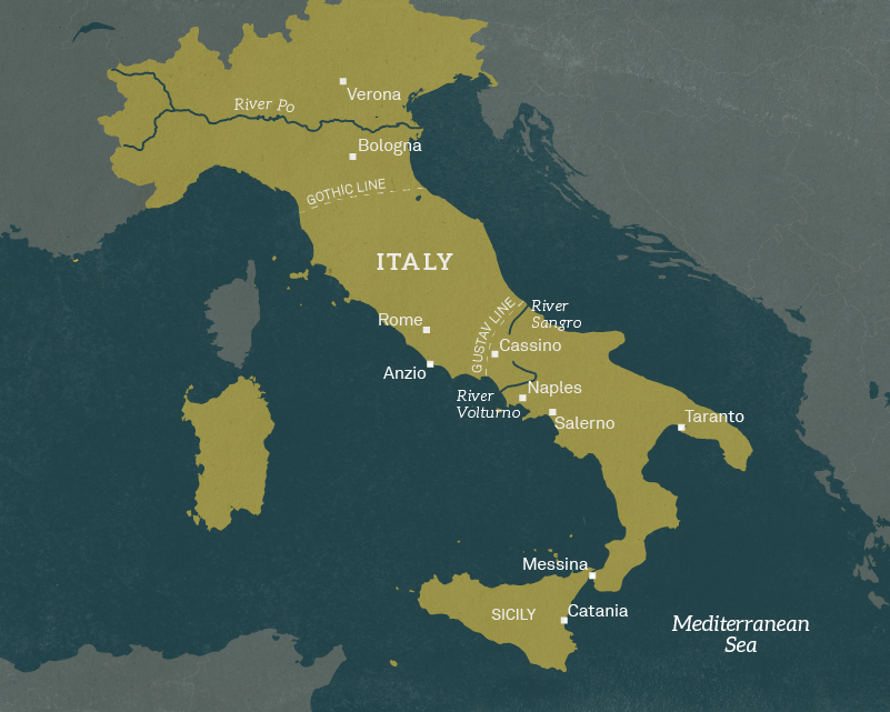 The Allies began the invasion of Italy in July 1943 it was to be a long and arduous battle. The terrain, weather, intermittent availability of resources for the allied army and the wily enemy stop started the Allied advance and it was to be a hard fought battle by battle campaign over the next ten months. With a further landing at Anzio in January 1944 of allied troops, around 70 miles behind enemy lines, there would be months of fighting before finally they could move out. The bloody battle for Cassino which was finally taken in May 1944 meant that Rome wasn’t taken until June and so the Allied forces finally reached the Gothic Line by September 1944. Bad weather was to keep them from advancing further north until April 1945 which saw Bologna taken by the Polish 2nd Corps and supporting Allied units on the 21st.