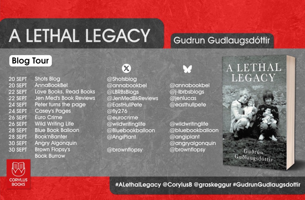 Many thanks to Ewa Sherman for the invite to join this terrific BlogTour and Corylus Books for an eCopy of A Lethal Legacy by Guðrún Guðlaugsdóttir and translated by Quentin Bates