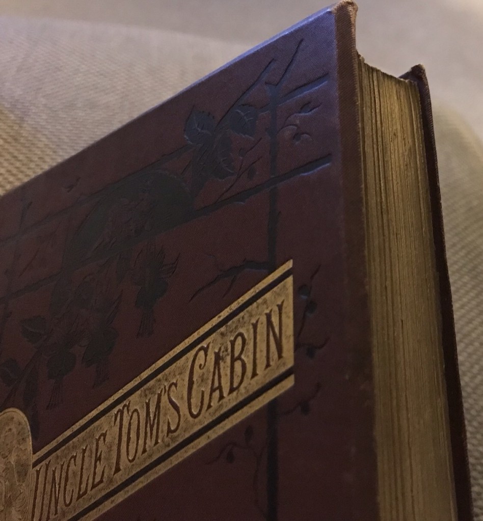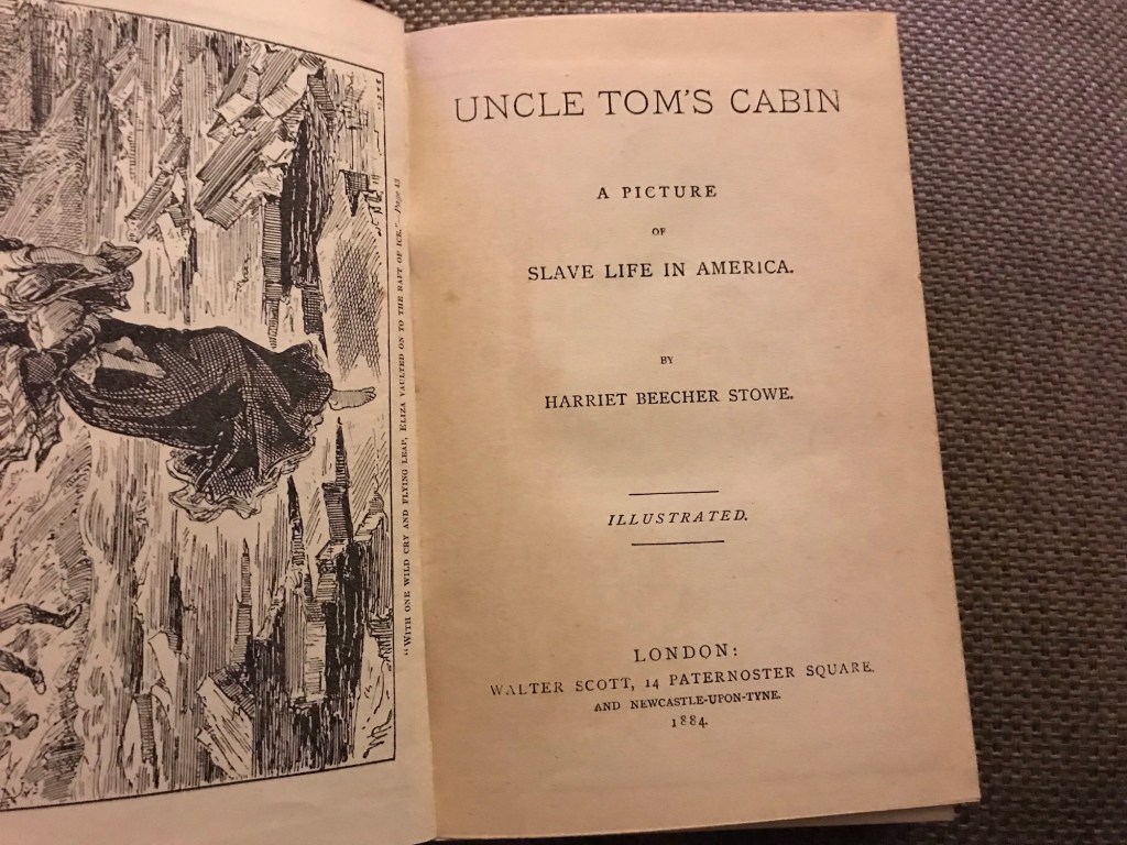 I have my maternal grandmothers copy of Uncle Tom’s Cabin by Harriet Beecher Stowe, published by Walter Scott 1884.