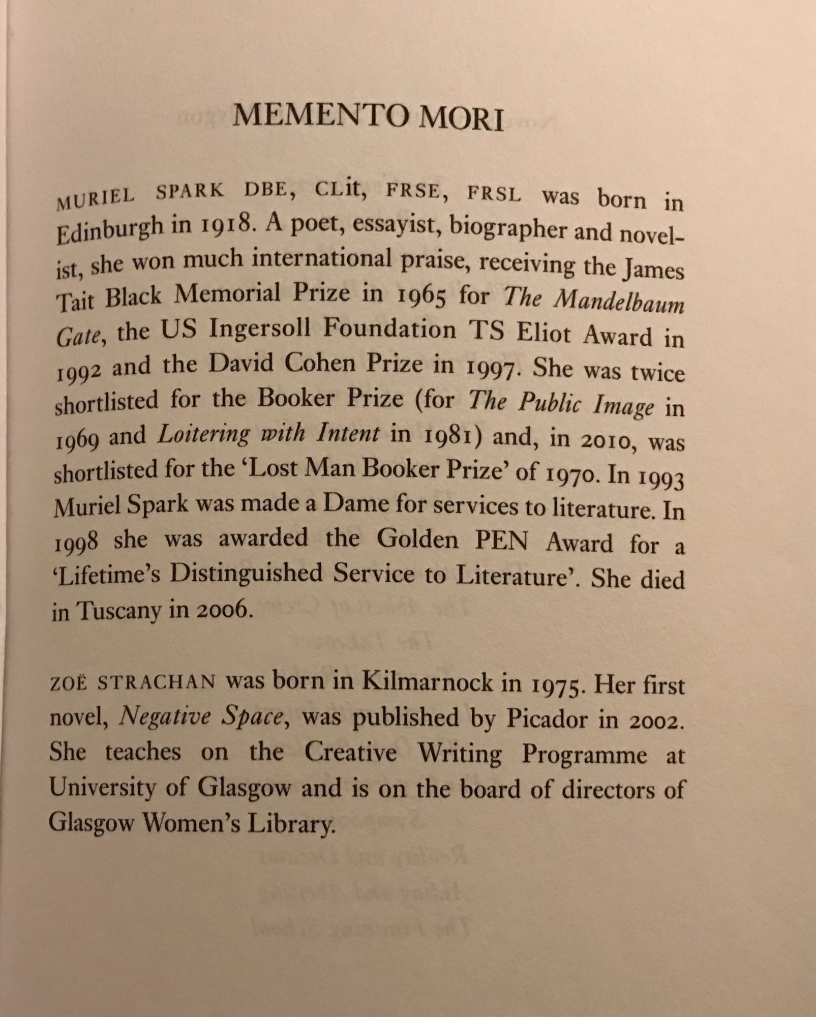 Published: Polygon (An Imprint of Birlinn Limited) Centenary Edition| 16 Nov 2017 | ISBN 978-1-84697-427-4 | 240 pp | Memento Mori – First published 1959